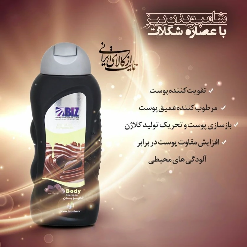 شامپو بدن شکلات BIZ با بهره گیری از آخرین دستاوردهای علمی و پژوهشی توانسته با استفاده از مجموعه سورفکتانتهای ملایم، در عین پاکسازی موثر بدن، از خشکی آن جلوگیری نموده و موجب نرمی و لطافت پوست گردد.